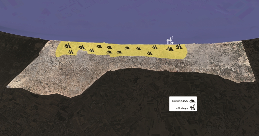 ثانياً: تحديد المكان الجديد لتجمّع النازحين بالمناطق الغربية لقطاع غزة حصراً، وضمن شريط ساحلي يمتد من منطقة المواصي (جنوب غرب القطاع) الى منطقة الشيج عجلين (جنوب مدينة غزة شمالاً)، وقد ثبت العدوّ فكرة أنه لن يسمح بإقامة مخيمات في مناطق الشمال، لكنه وافق على إقامة نقطة جديدة في منطقة مفتوحة تقع في شمال غرب خان يونس.