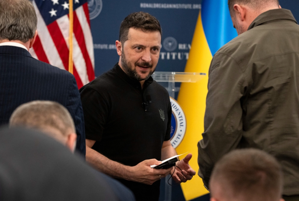 وقد استبق زيلينسكي موعد القمة، بكلمة له أمام «معهد رونالد ريغان»، موجّهاً دعوة مبطّنة إلى الجمهوريين، بحضور زعيم الأقلية الجمهورية في مجلس الشيوخ، ميتش ماكونيل، إلى عدم انتظار نتائج الانتخابات الرئاسية في تشرين الثاني المقبل لحسم قرارهم حول أوكرانيا، ومتجنّباً توجيه انتقادات إلى المرشح الرئاسي الجمهوري، دونالد ترامب. وناشد الرئيس الأوكراني، قادة الحزب الجمهوري استذكار إرث الرئيس ريغان الرافض لفكرة «الانعزالية في مواجهة الأنظمة الاستبدادية»، معرباً عن أمله باستمرار الدعم الأميركي لكييف، حتى في حال انتخاب ترامب.