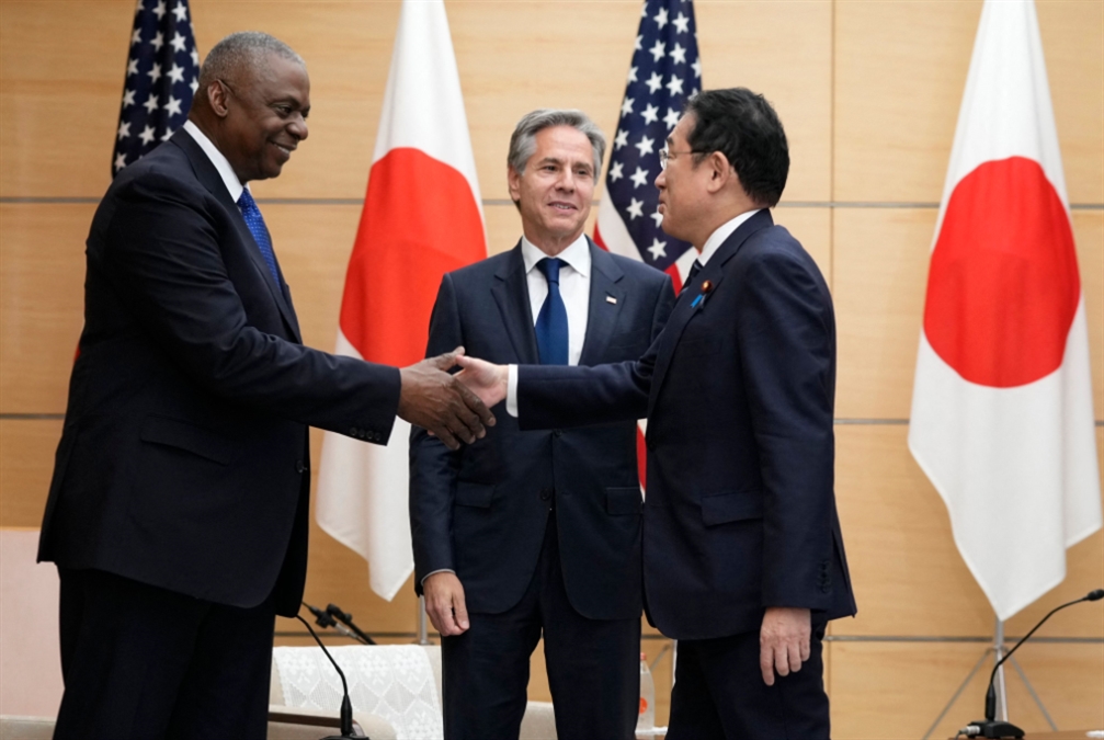 خلُصت المحادثات الرفيعة المستوى التي عقدها كبار المسؤولين الأميركيين واليابانيين، في طوكيو الأحد، إلى الإعلان عن رفع مستوى قيادة القوات الأميركية في اليابان ودرجة نفوذها، بالإضافة إلى تعزيز إنتاج الصواريخ المرخّصة من الولايات المتحدة في البلد الواقع شرق آسيا، في ترقية وصفها وزير الدفاع الأميركي، لويد أوستن، بأنّها «أهم تغيير تشهده القوات الأميركية – اليابانية منذ إنشائها»، وواحد من «أقوى التحسينات» في علاقة واشنطن العسكرية مع طوكيو «منذ 70 عاماً». كما «طمأنت» الولايات المتحدة، اليابان، في ما يتعلق بالردع النووي الذي ستقدّمه لها «في حال نشوب صراعات»، وذلك بعد جلسة وزارية هي الأولى من نوعها بين الطرفين، تمحورت حول ما سُمّي «الردع الموسّع». وتمّ الإعلان عن ترقية العلاقات الدفاعية المشار إليها، في بيان مشترك، بعد محادثات تُعرف باسم «2 زائد 2»، بين وزير الخارجية الأميركي، أنتوني بلينكن، ووزير الدفاع لويد أوستن، ونظيريهما اليابانيين، يوكو كاميكاوا، ومينورو كيهارا. وتضمّن البيان «هجوماً شرساً» على الصين، التي وصفها بـ«أكبر تحدّ استراتيجي».وفي الواقع، وعلى الرغم من أنّ عديد القوات الأميركية المتمركزة في اليابان يبلغ نحو 54 ألفاً، فإنّ «قيادة المحيطين الهندي والهادئ»، الواقعة في هاواي، أي على بعد حوالى 6 آلاف و500 كيلومتر، وحيث يبلغ فرق التوقيت 19 ساعة، هي المسؤولة حالياً عنها. وعليه، أعلن الجانبان عن خطط لتأسيس «مقر قوة مشتركة» جديد في اليابان، يرأسه قائد عسكري أميركي، لقيادة القوات الموجودة هناك، يعمل جنباً إلى جنب «قيادة القوات المشتركة» التي تخطط لها اليابان لجميع قواتها المسلّحة، بهدف جعل الجيشين «أكثر يقظة، في حال اندلاع أزمة مرتبطة بتايوان أو شبه الجزيرة الكورية». وبحسب صحيفة «بوليتيكو»، تندرج التعزيزات المشار إليها في إطار تكثيف طوكيو لخططها حول دورها المحتمل «في حال غزت الصين تايوان»، باعتبار أنها ستكون قاعدة رئيسية للقوات الأميركية التي قد يتم نشرها في حال تحقق مثل هذا السيناريو.
